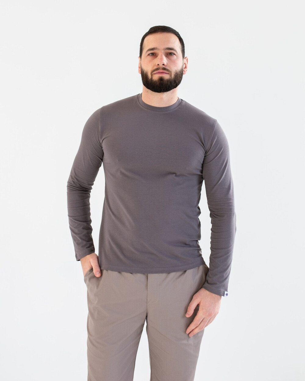 Медичний лонгслів чоловічий сіро-коричневий р. M, "БІЛИЙ ХАЛАТ" 357-524-951