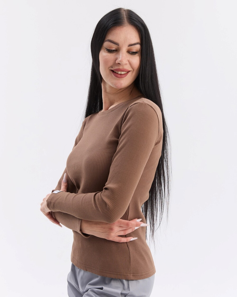 Медичний лонгслів в рубчик жіночий какао р. XL, "БІЛИЙ ХАЛАТ" 392-521-901