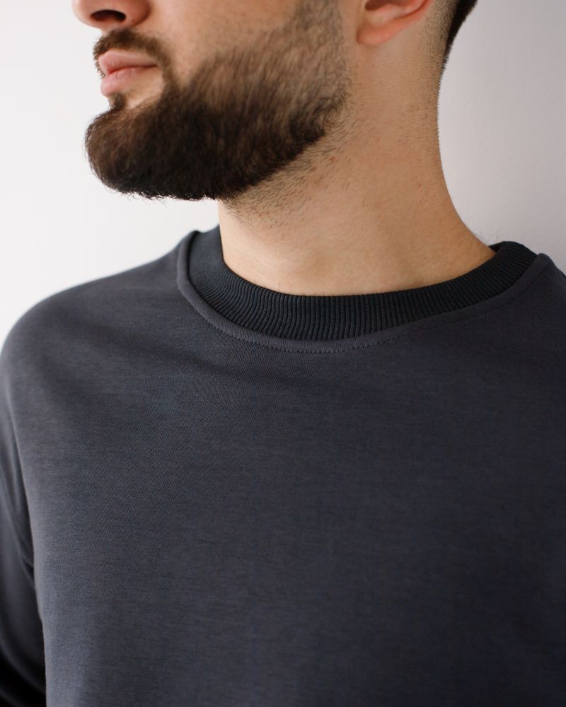 Чоловічий світшот Монреаль містить круглий виріз, довгі рукави з опущеним плечем на манжеті, низ - на манжеті. На лівому рукаві пришита жакардова бирка з логотипом.
