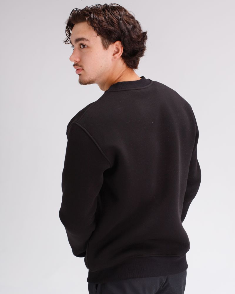 Світшот вільного силуету з круглим вирізом, довгі рукави з опущеним плечем на манжеті, низ кофти на манжеті, на лівому рукаві пришита жакардова бирка з логотипом.