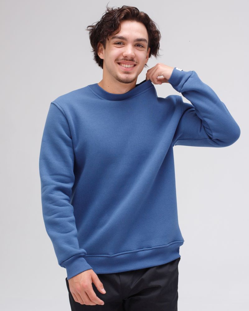 Світшот вільного силуету з круглим вирізом, довгі рукави з опущеним плечем на манжеті, низ кофти на манжеті, на лівому рукаві пришита жакардова бирка з логотипом.