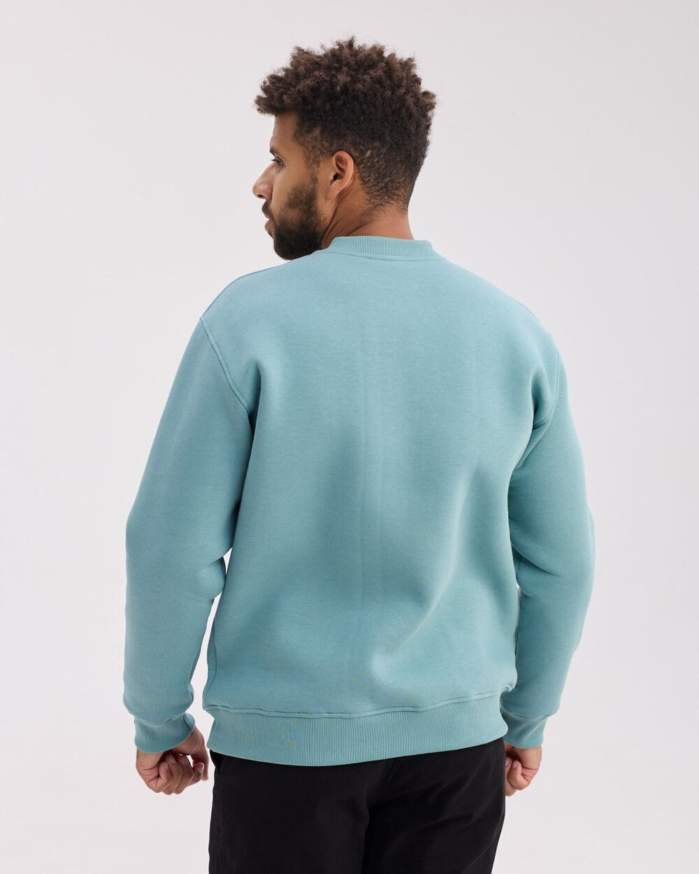 Cвітшот вільного силуету з круглим вирізом, довгі рукави з опущеним плечем на манжеті, низ кофти на манжеті, на лівому рукаві пришита жакардова бірка з логотипом.