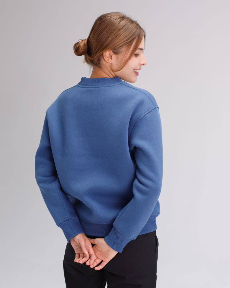Світшот вільного силуету з круглим вирізом, довгі рукави з опущеним плечем на манжеті, низ кофти на манжеті, на лівому рукаві пришита жакардова бирка з логотипом.