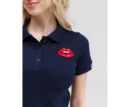 Медичне поло жіноче синє з вишивкою Губи р. XL, "БІЛИЙ ХАЛАТ" 147-322-635