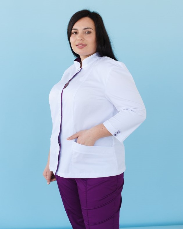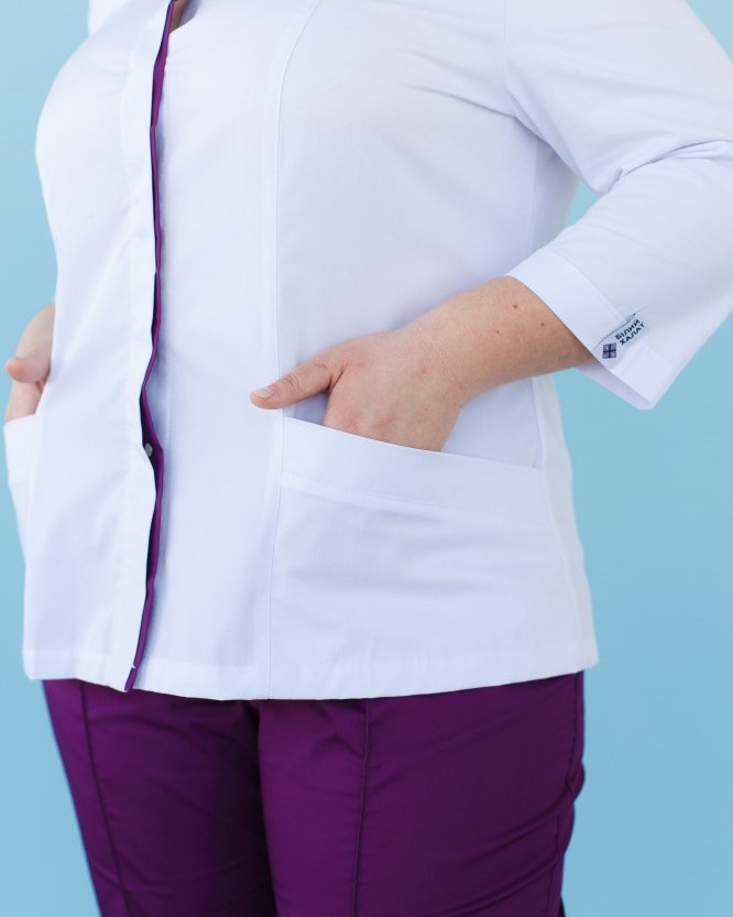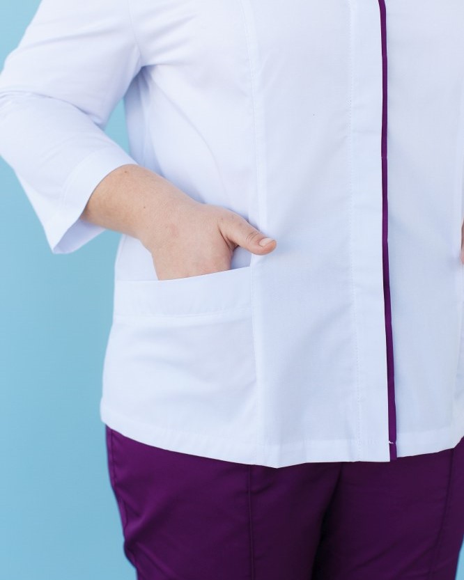 Сорочка жіноча Сакура білий-фіолетовий +SIZE р. 60, "БІЛИЙ ХАЛАТ" 311-346-679