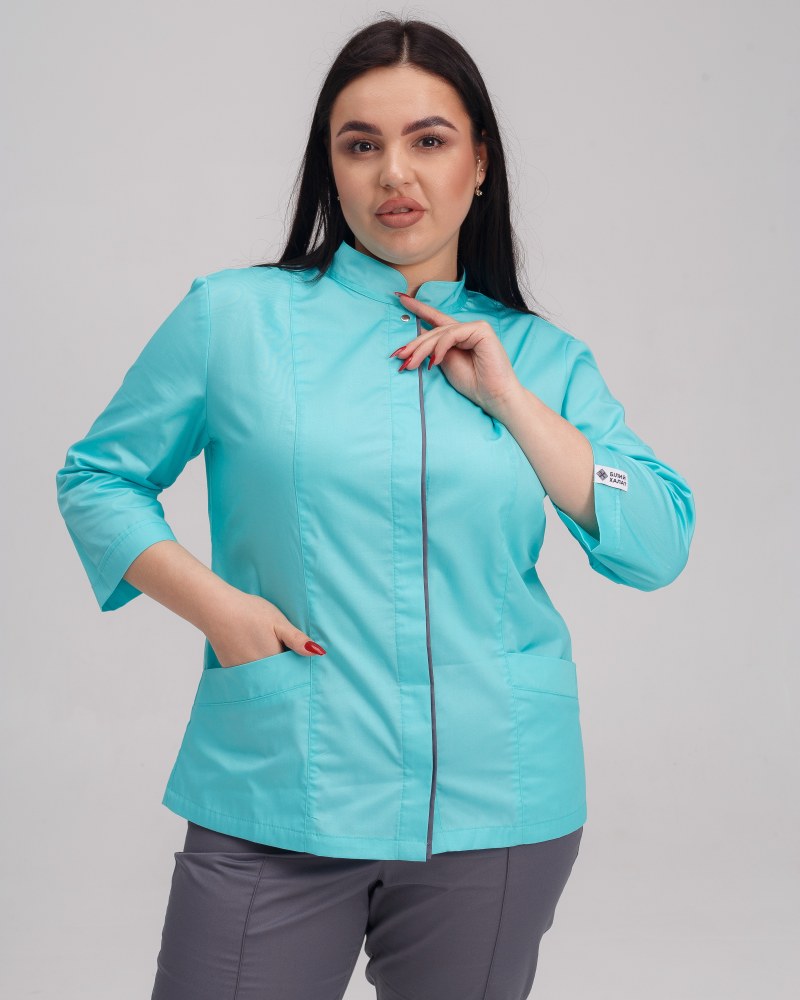 Медична сорочка жіноча Сакура м'ятний-сірий SIZE р. 60, "БІЛИЙ ХАЛАТ" 311-356-679