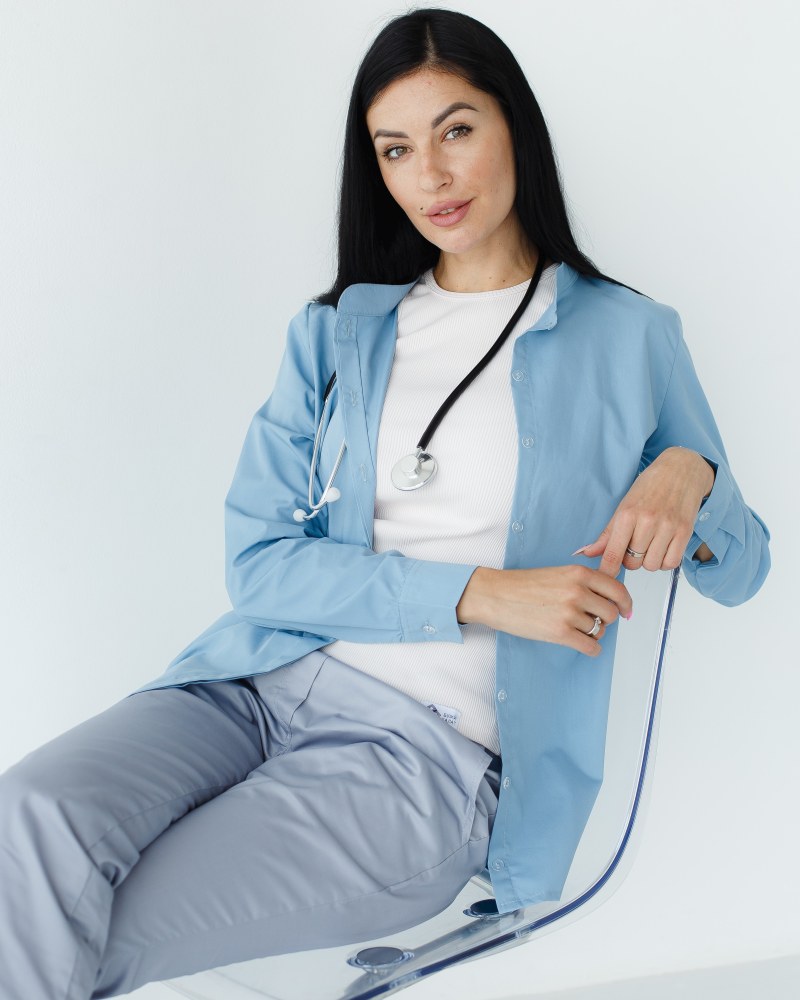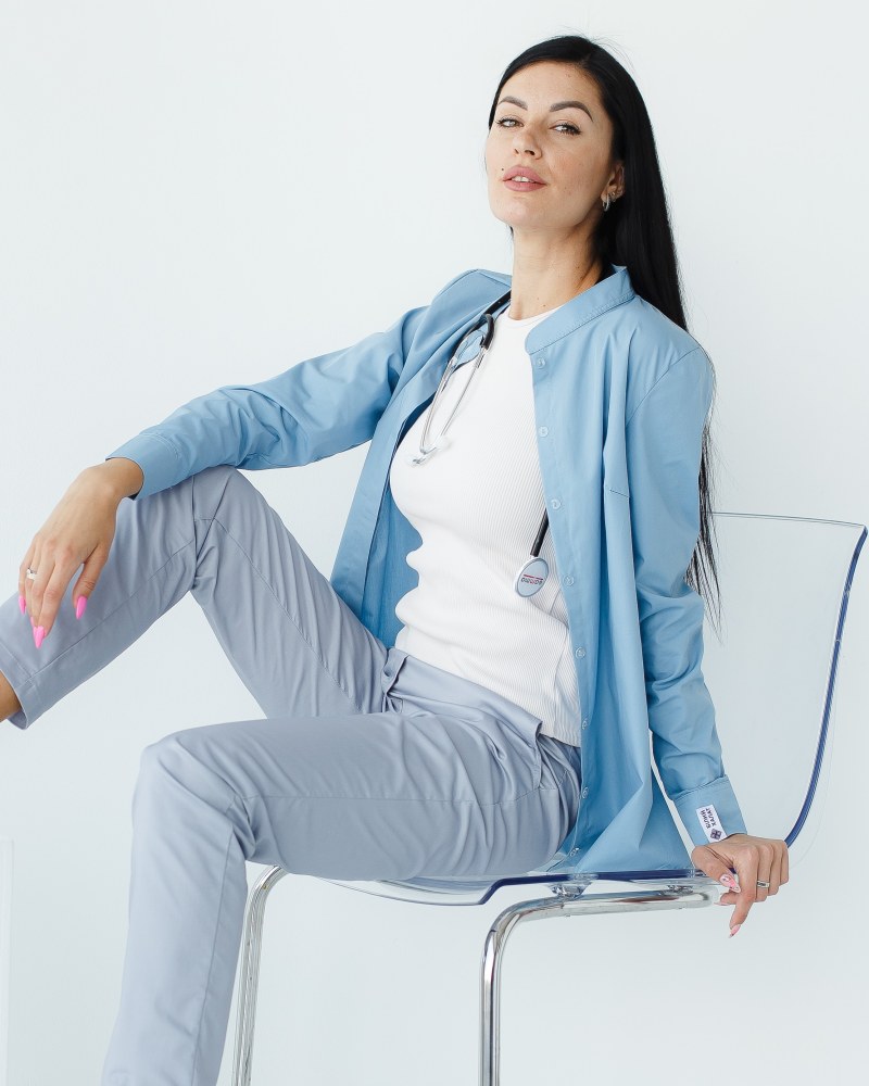 Медична сорочка жіноча Стефанія сіро-блакитна р. 48, "БІЛИЙ ХАЛАТ" 402-458-821