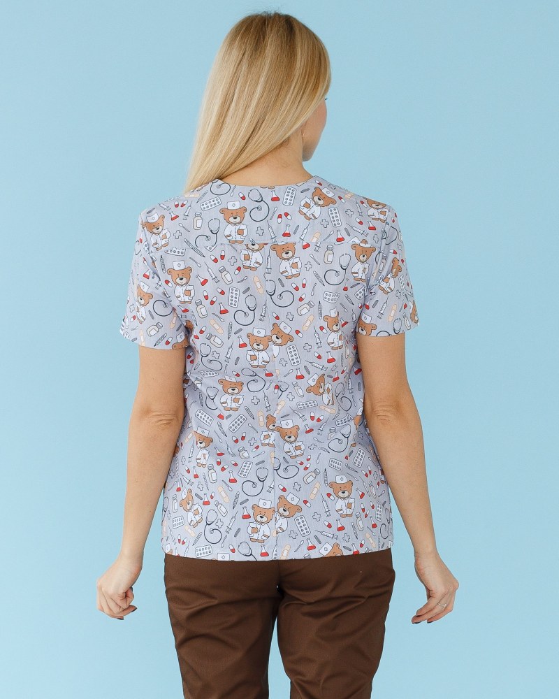 Медична сорочка жіноча Топаз принт Bear gray р. 40, "БІЛИЙ ХАЛАТ" 126-373-558