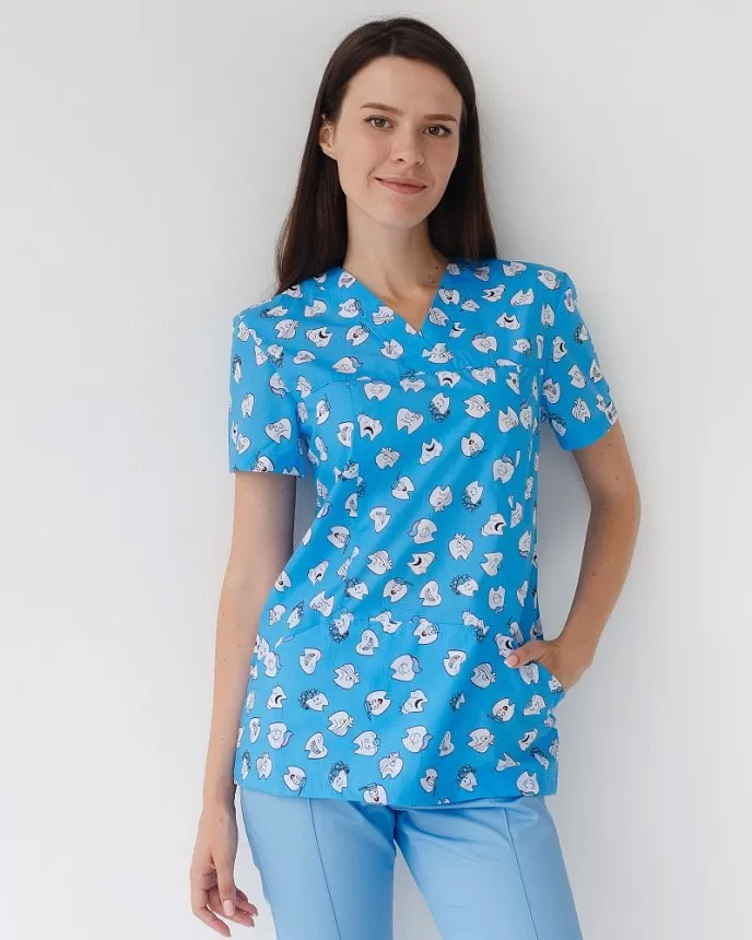 Медичні сорочки з принтом Топаз - практичний варіант уніформи для лікарів та майстрів краси. Сорочка медична напівприталеного фасону декорована тематичними принтами, які додадуть фарб та настрою у ваш робочий гардероб.