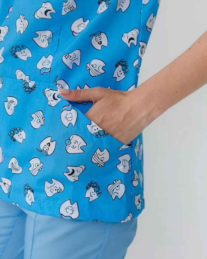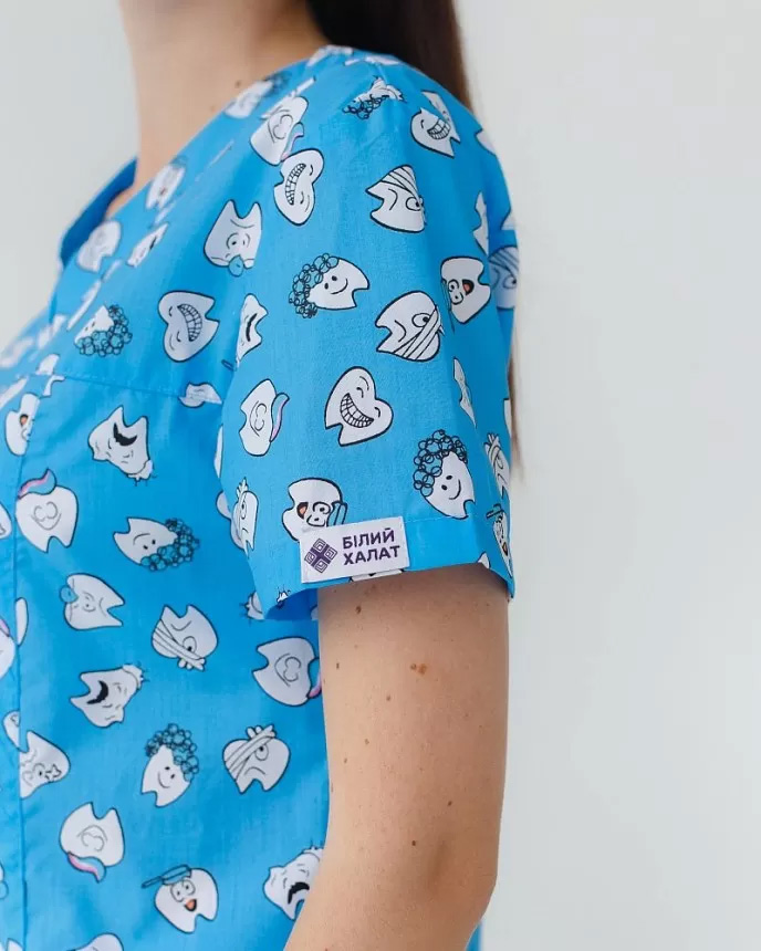 Медична сорочка жіноча Топаз принт Dentist blue р. 42, "БІЛИЙ ХАЛАТ" 126-376-776