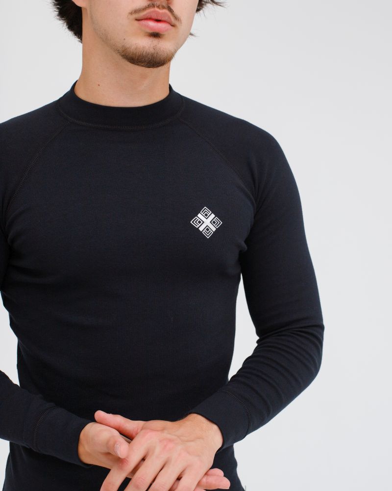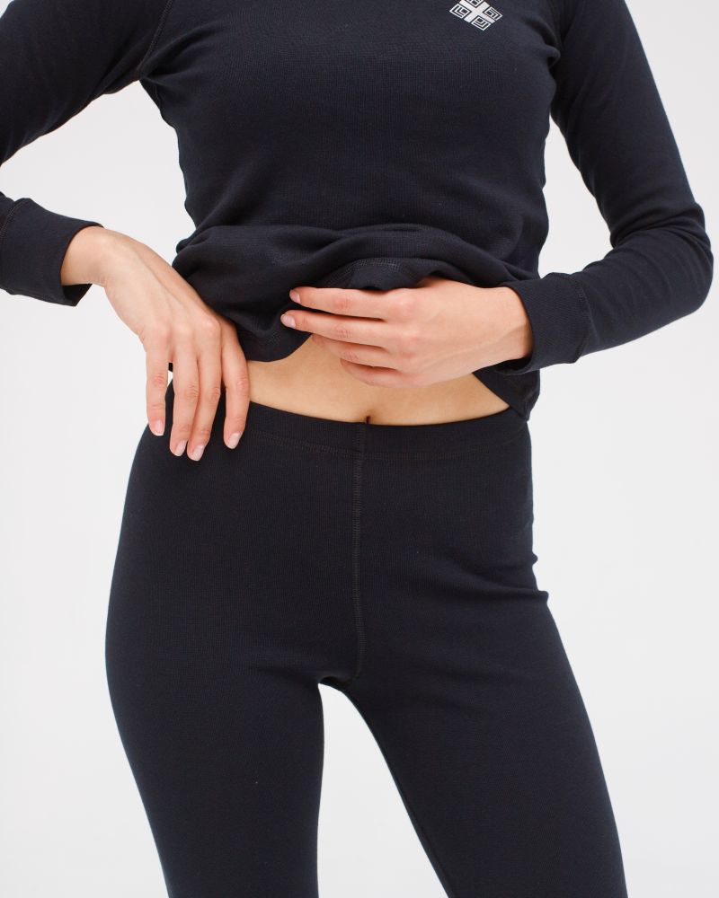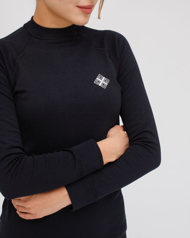 Комплект з лонгсліву та легінсів приталеного фасону зігріває вас у холодну пору року. Круглий виріз та рукав-реглан дозволяє носити термобілизну під різним одягом.