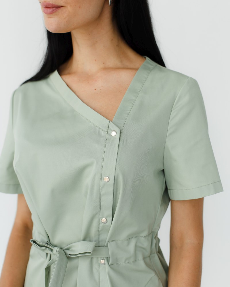 - медична туніка жіноча має асиметричний виріз горловини, що повністю відповідає сучасним трендам;- туніка для медиків Наомі надійно застібається на низку кнопок;