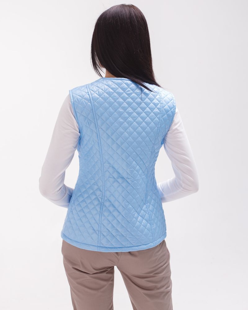 Стіганий жилет на блискавці, виконаний з плащової тканини і утеплений синтепоном 120. Має напівприталений фасон і дві місткі кишені. У складі 100% поліестер. Медичний утеплений жилет має дві втачні кишені і круглий виріз горловини. Модель має високу зносостійкість і практичність у використанні. Жилетка представлена в різних кольорах на вибір.