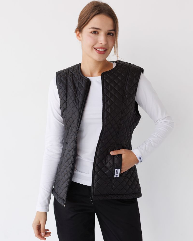 Стіганий жилет на блискавці, виконаний з плащової тканини і утеплений синтепоном 120. Має напівприталений фасон і дві місткі кишені. У складі 100% поліестер. Медичний утеплений жилет має дві втачні кишені і круглий виріз горловини. Модель має високу зносостійкість і практичність у використанні. Жилетка представлена в різних кольорах на вибір.