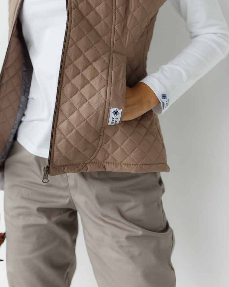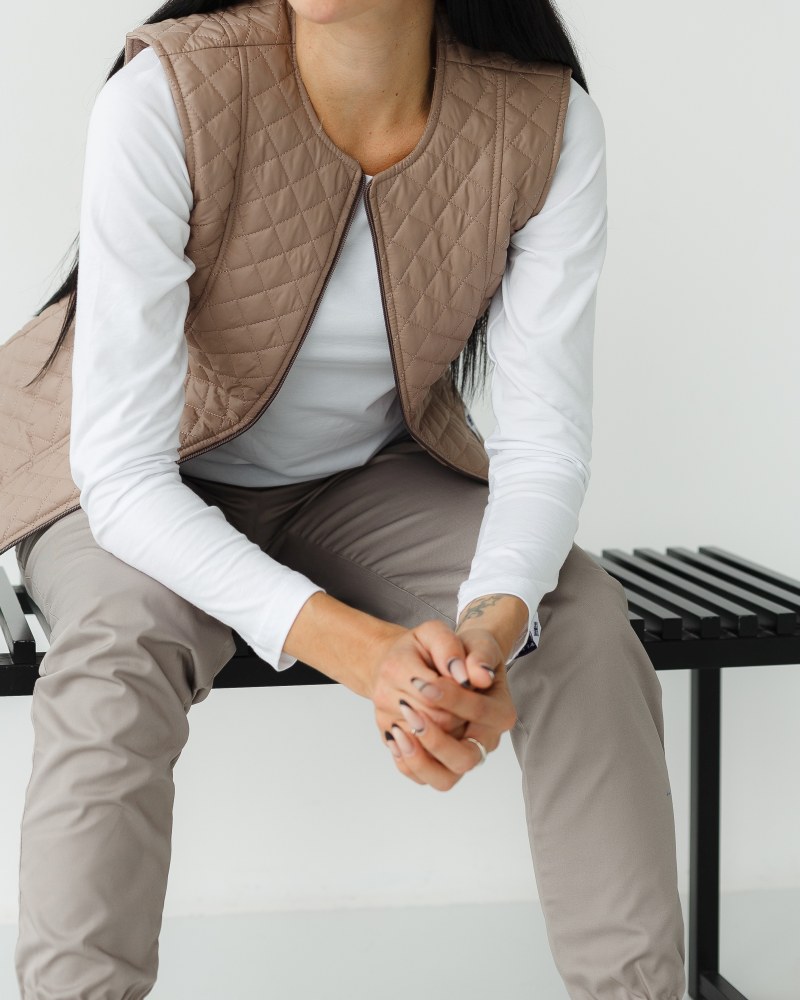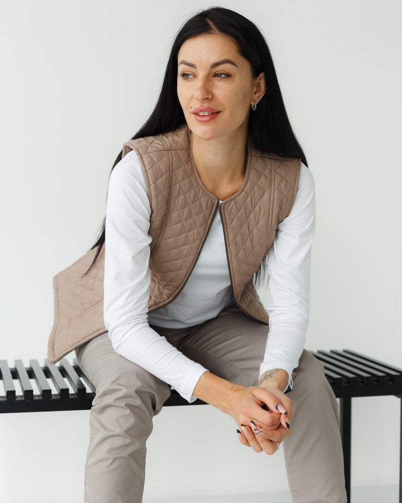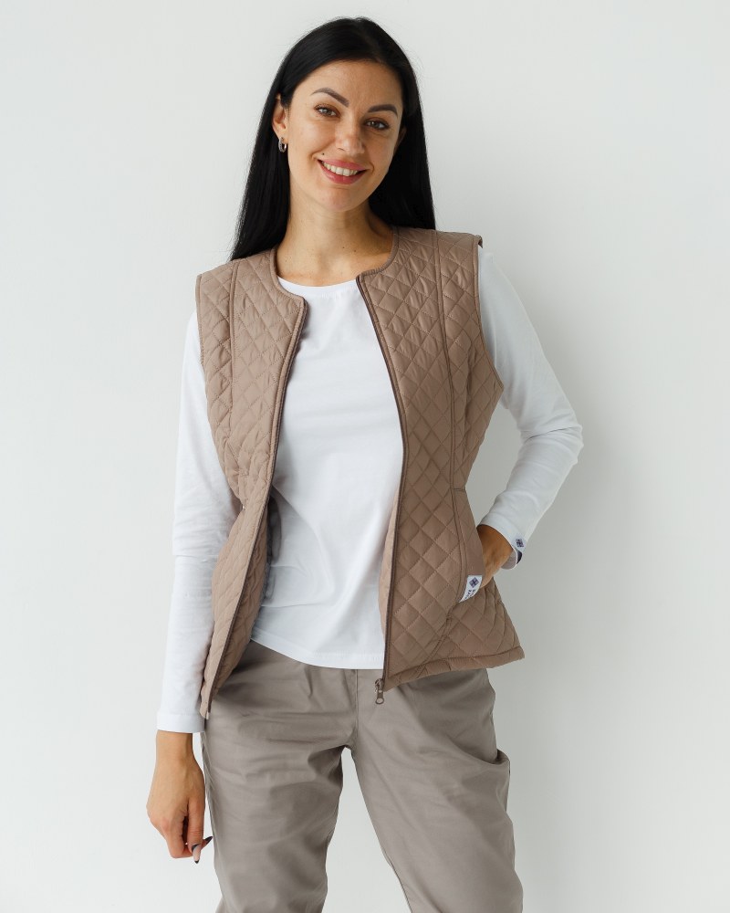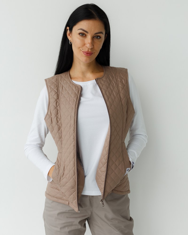Стіганий жилет на блискавці, виконаний з плащової тканини і утеплений синтепоном 120. Має напівприталений фасон і дві місткі кишені. У складі 100% поліестер. Медичний утеплений жилет має дві втачні кишені і круглий виріз горловини. Модель має високу зносостійкість і практичність у використанні. Жилетка представлена в різних кольорах на вибір.