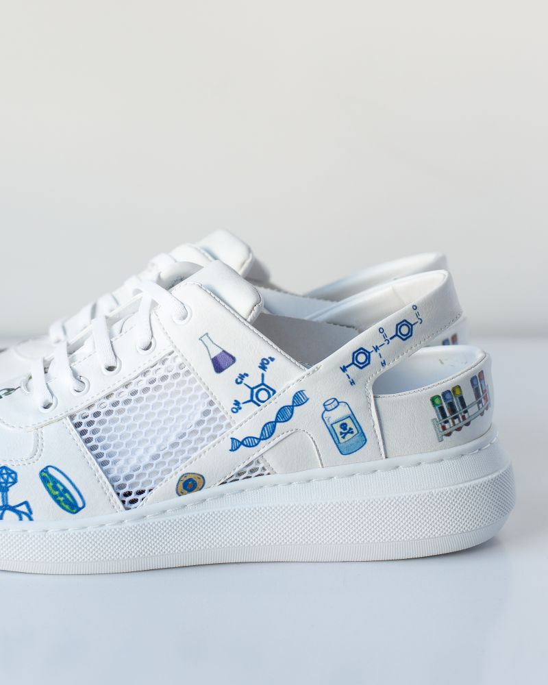 Якщо вас цікавить медичне взуття для жінок з цікавим дизайном – вибирайте медичні кросівки жіночі з відкритою п'ятою, декоровані тематичними принтами. Вони яскраві, стильні та зручні, радуватимуть вас та ваших пацієнтів, клієнтів. Весь асортимент медичних кросівок із малюнками є на нашому сайті у відповідному розділі каталогу. Є й однотонні моделі медичних кросівок з відкритою п'ятою та вставками із сітки, які ідеально підійдуть для спекотної пори року.