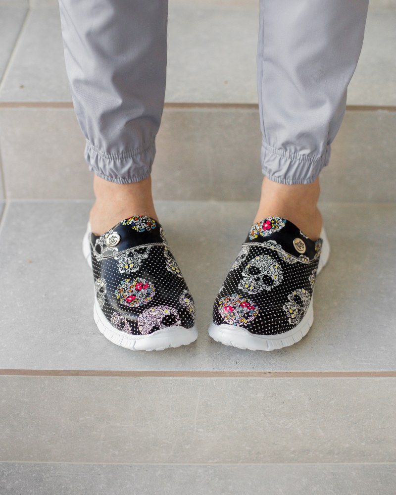 Медичне взуття жіноче сабо з підошвою Lite має широку закриту верхню частину з об'ємним носком, у якому пальці ніг вільно рухаються. Перфорація носіння медичного взуття забезпечує рух повітря та відведення вологи, ноги не пітніють. Таке медичне взуття для жінок виглядає стильно за рахунок дизайнерських тематичних принтів, які легко впишуться у ваш гардероб. Медичне взуття сабо з підошвою Lite легке, пластичне, не обмежує рухів та повторює форму стопи під час ходьби. Якщо ви бажаєте купити медичні капці в яких забудете про втому в ногах - жіночі медичні сабо з підошвою Lite найкращий варіант для вас.