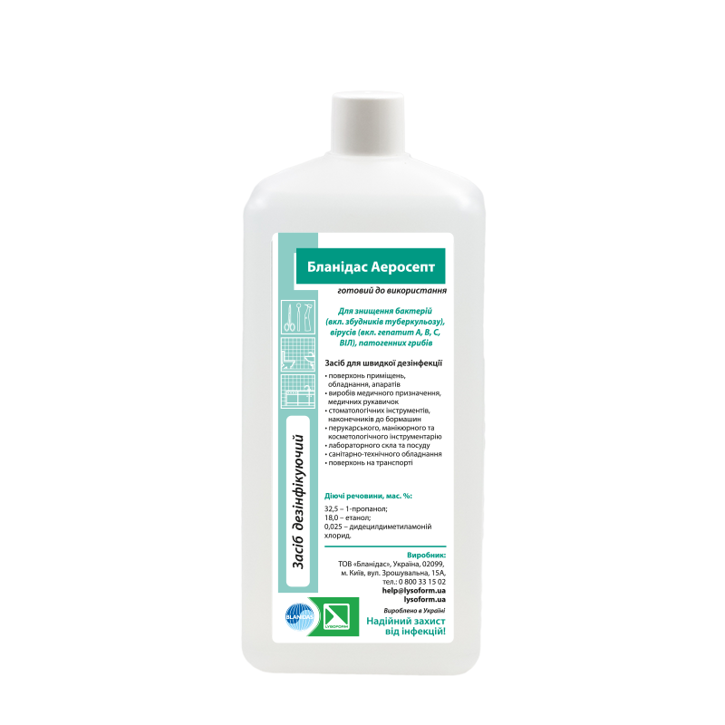 Купити Дезінфікуючий спиртовмісний безальдегідний засіб Бланідас Аеросепт 1000 мл, Blanidas, ви зможете у нашому інтернет-магазині limonad з доставкою по всій Україні в тому числі і Київ, Дніпро, Одеса, Харків, Запоріжжя, Одеса, Львів та багато інших населених пунктів.