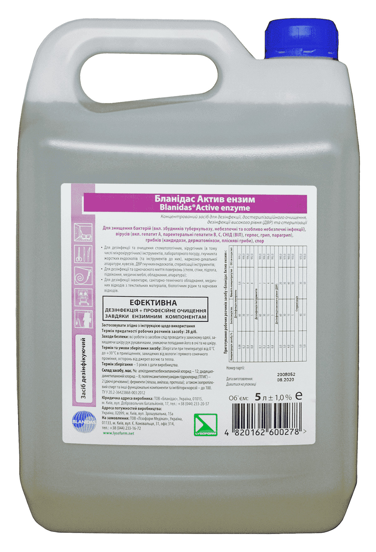 Купити Бланідас Актив ензим 5л - дезінфекція інструментів та поверхонь, Blanidas, ви зможете у нашому інтернет-магазині limonad з доставкою по всій Україні в тому числі і Київ, Дніпро, Одеса, Харків, Запоріжжя, Одеса, Львів та багато інших населених пунктів.