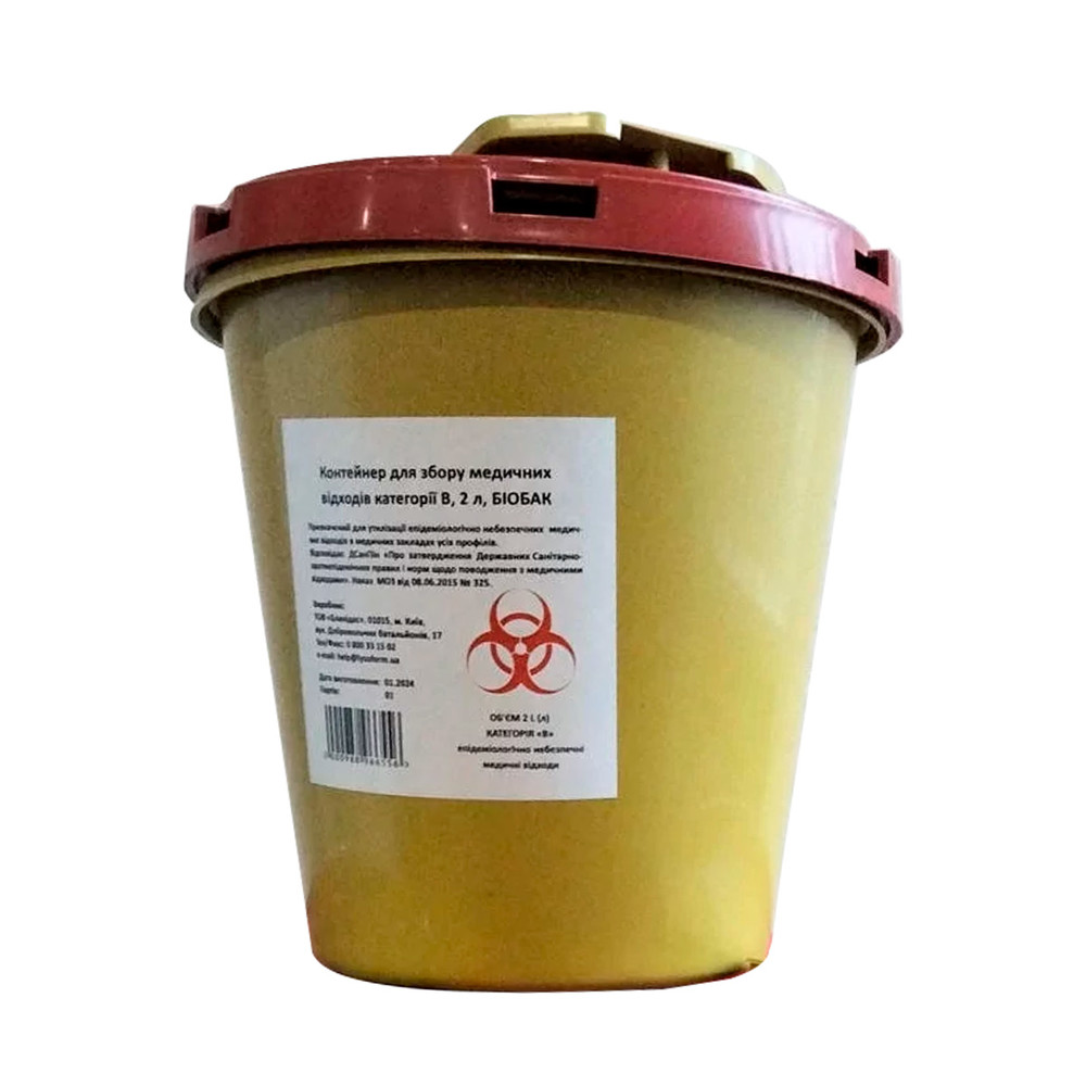 БіоБак 2 л - контейнер для збору медичних відходів категорія B, Blanidas