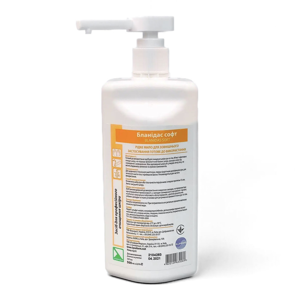 Купити Бланідас Софт 500 мл - делікатне рідке мило для очищення рук і тіла, Blanidas, ви зможете у нашому інтернет-магазині limonad з доставкою по всій Україні в тому числі і Київ, Дніпро, Одеса, Харків, Запоріжжя, Одеса, Львів та багато інших населених пунктів.