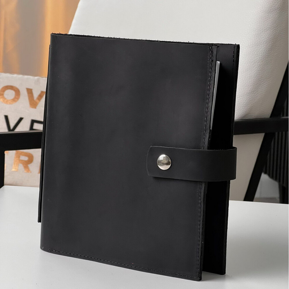 Сторінки можна легко діставати, замінювати або змінювати їх порядок, що робить блокнот універсальним та зручним у використанні. - Велика кишеня формату А4: