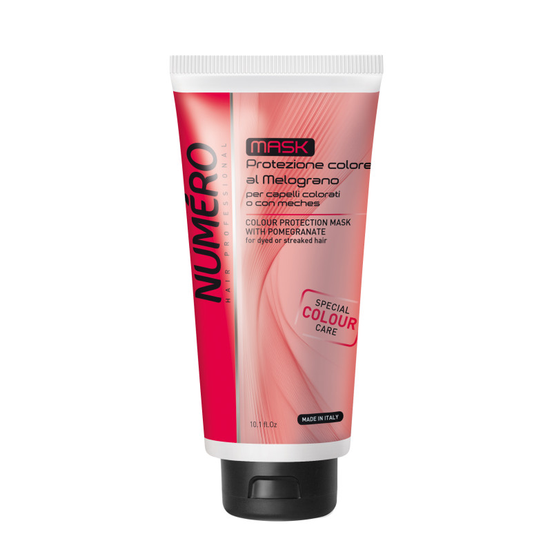 Маска Brellil Numero Colour з екстрактом гранату, вітаміном С, вітамінами групи В, високим вмістом антиоксидантних поліфенолів призначений для використання на пофарбованих волосся. Всі ці компоненти забезпечують волоссю надійний захист кольору. Шампунь захищає волосся від вигоряння та впливу зовнішніх негативних факторів, надовго зберігає інтенсивність та яскравість кольору. Маска не обтяжує волосся.