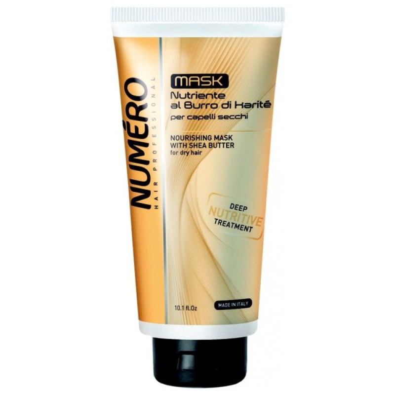 Серія професійної косметики для волосся Berelil Numero з маслами Каріте (Ши) та авокадо призначена для лікування та догляду всіх типів волосся, пошкоджених інтенсивною хімічною обробкою (фарбування, завивка, випрямлення) і піддаються постійному термічному впливу (часте використання плівок для завивки та випрямлячів). Поживна маска для сухого волосся Berelil Numero з маслами Карите (Ши) та авокадо глибоко відновлює структуру волосся, інтенсивно зволожує, без обтяження. Після застосування маски волосся набуває живого блиску та сяйва.