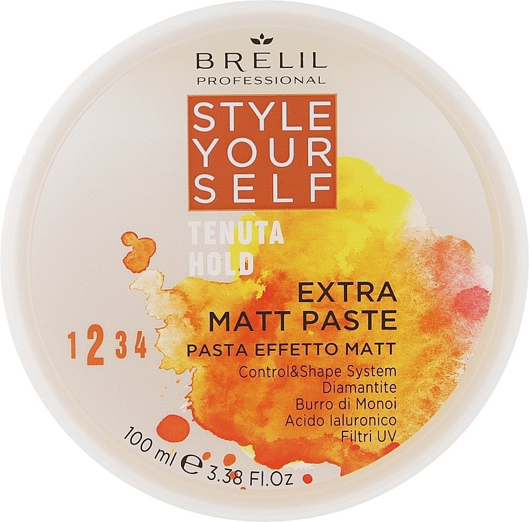 Style Yourself Hold Extra Matt Paste — паста для волосся, що моделює, з матовим ефектом, яка зробить створення зачісок творчим, легким і комфортним процесом. Її формулу розроблено експертами бренду Brelil на базі системи Control&Shape. Це зробило стайлінгове засіб ефективним і наділило його текстурою, що добре розподіляється. Вона створює практично невагоме і невідчутне покриття, що надає пасмам еластичність без обтяження і склеювання, структурує і фіксує їх. Ретельно підібрані, активні складові б'юті-продукту також дбають про можливість реконструювання укладання протягом дня.