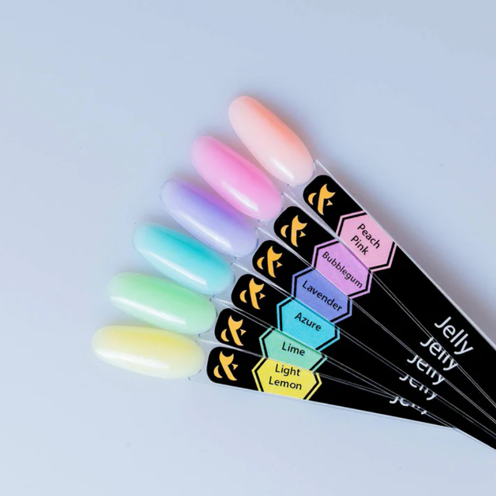F.O.X Jelly – гель із желеподібною консистенцією. Має відповідну в'язкість і добре тримає складну форму до полімеризації, що дозволяє легко коригувати форму нігтя.
