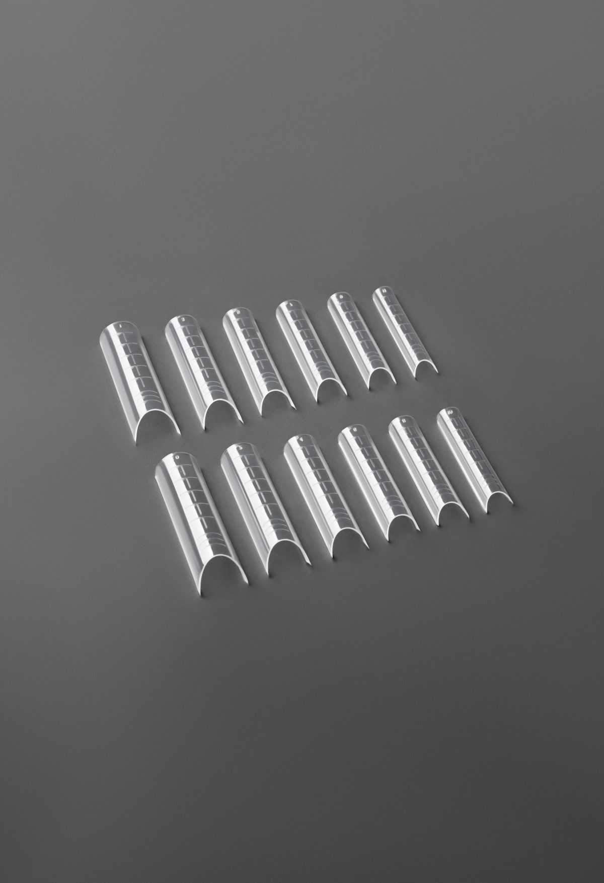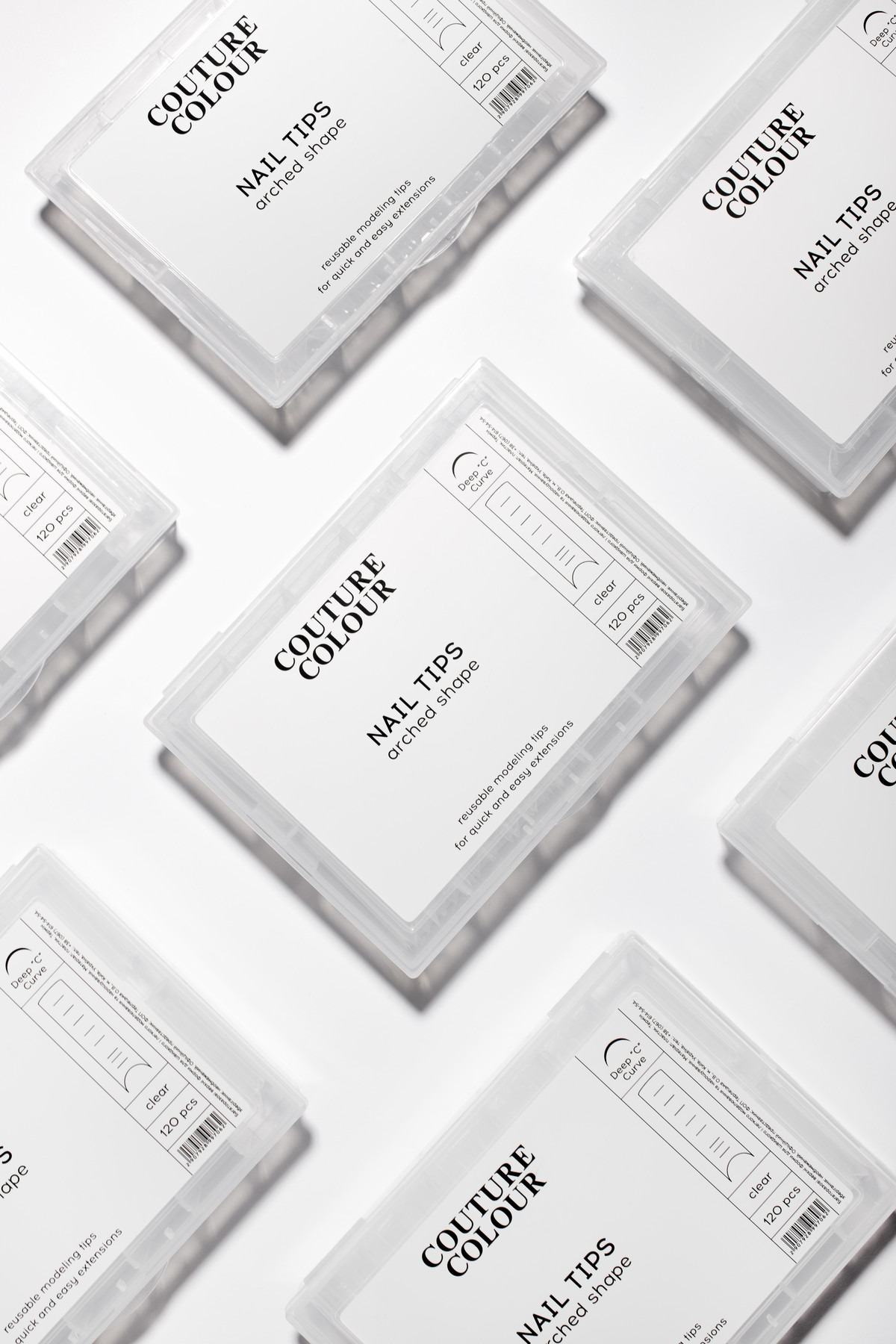 Couture Colour Nail Tips Arched Shape - це верхні арочні форми для нарощування нігтів за допомогою гелю, акригелю, акрилу. Використовуються в моделюванні нігтьових пластин з вираженою С-подібною аркою. Призначені для багаторазового застосування. Не мають контактної зони, можуть використовуватися для коротких нігтів. Не передбачають додаткового обпилювання, не вимагають підрізування в області стику з нігтьовою пластиною. Оснащені розміткою для контролю над розподілом матеріалу.