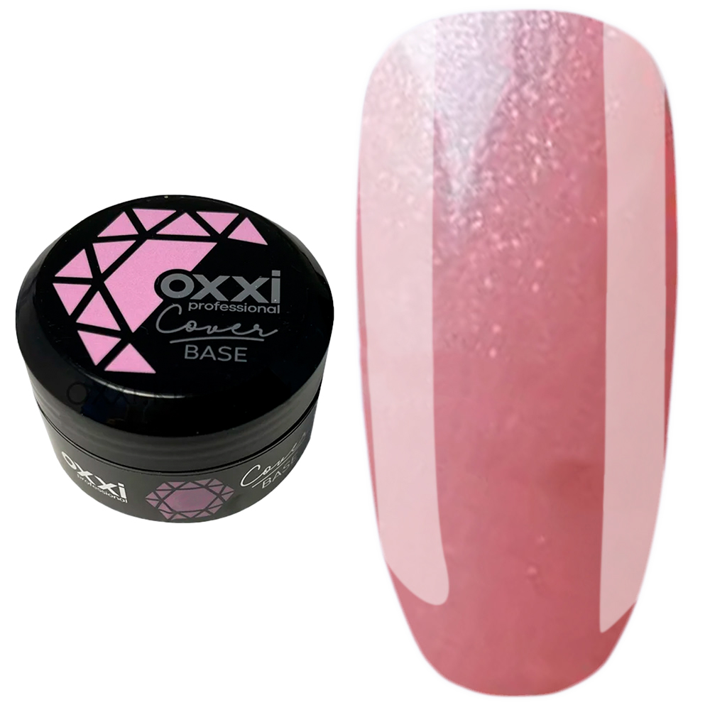 Камуфлююча база для гель-лаку OXXI Cover Base 30 мл № 10 ніжно-рожева зі срібним шиммером