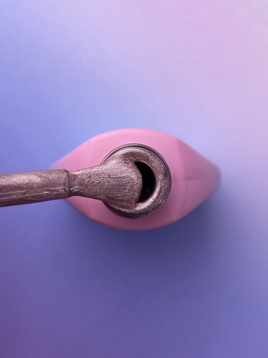 - Наносимо гель-лак Cat Eye. Набираємо матеріал на пензлик і тонким шаром промальовуємо центр нігтя, а потім — бічні стінки.