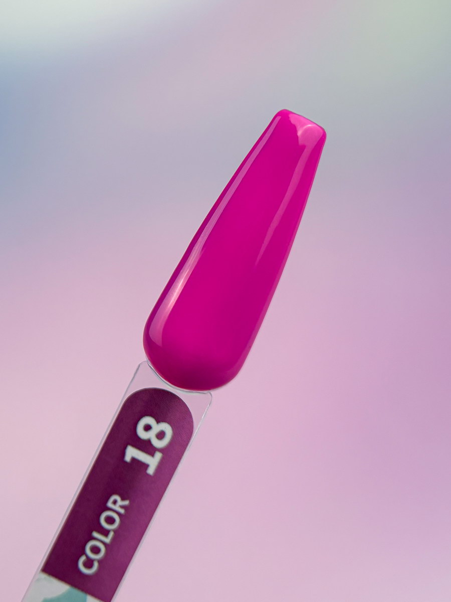 Гель-лак Color №18 - Ідеально пігментований гель-лак лягає як в один, так і у два тонких шари. Він не утворює смуг під час нанесення і легко самовирівнюється, має середньо-густу консистенцію.