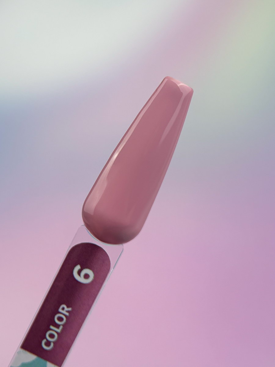 Гель-лак Color №6 - Ідеально пігментований гель-лак лягає як в один, так і у два тонких шари. Він не утворює смуг під час нанесення і легко самовирівнюється, має середньо-густу консистенцію.