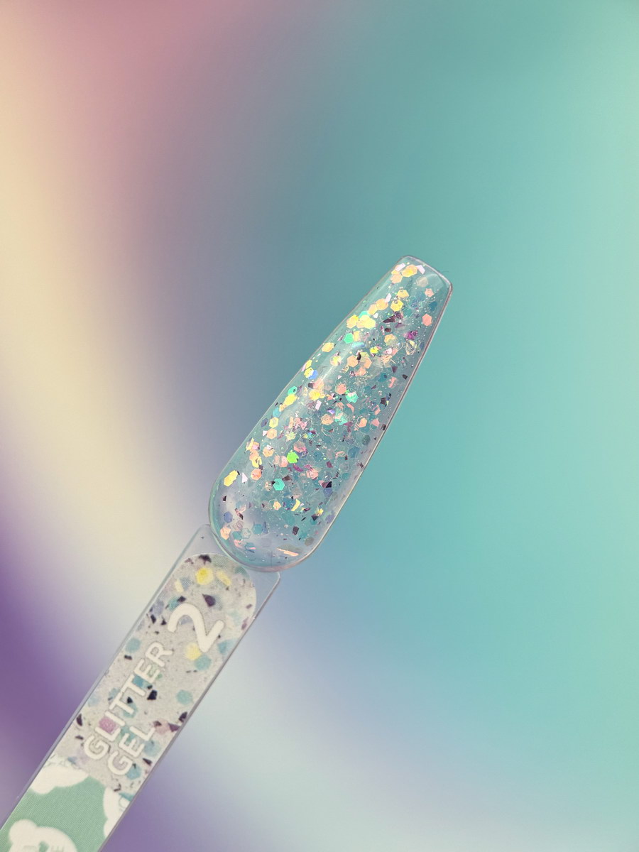 Glitter Gel №2 — це гель середньої в’язкості з великою кількістю блискіток різного розміру та кольору.