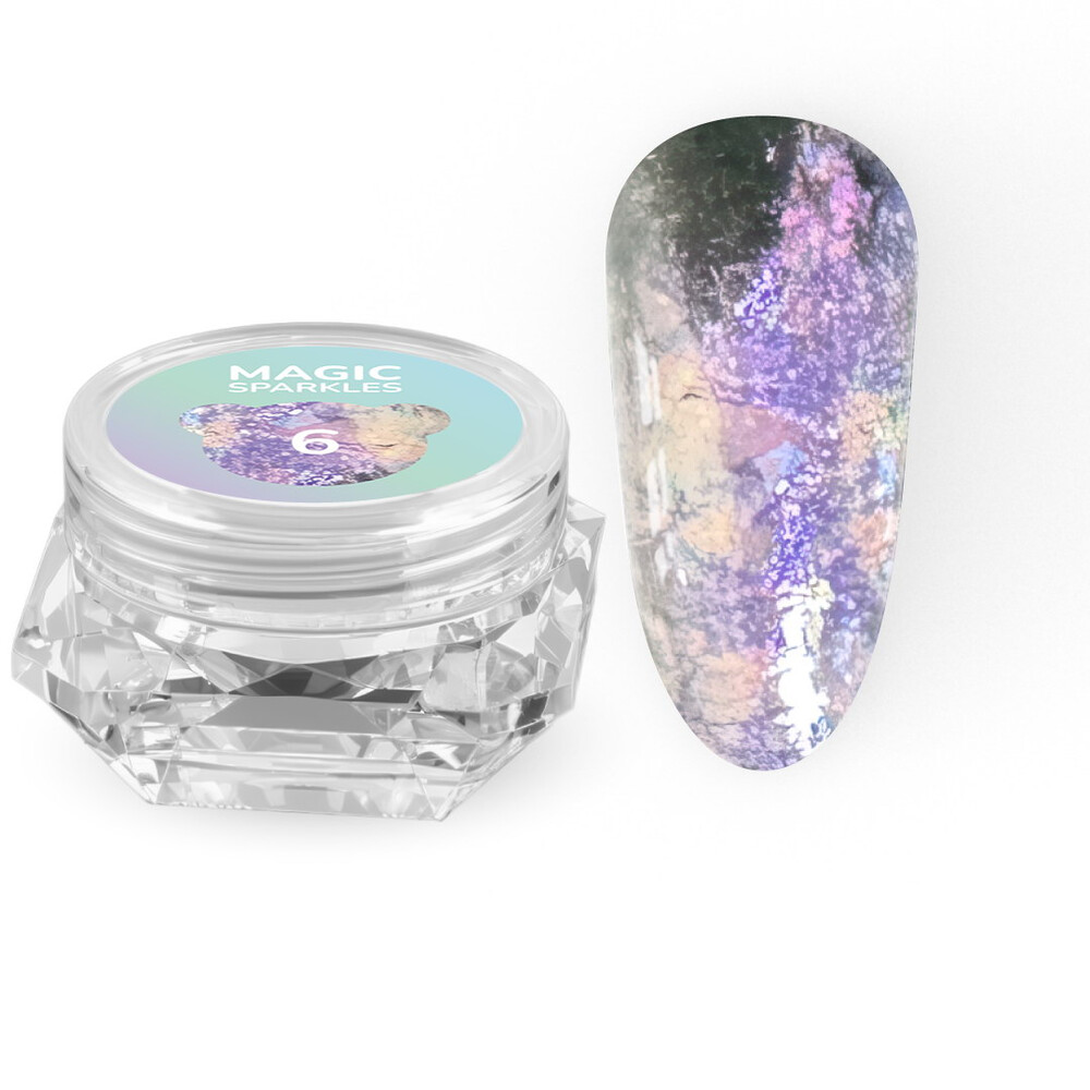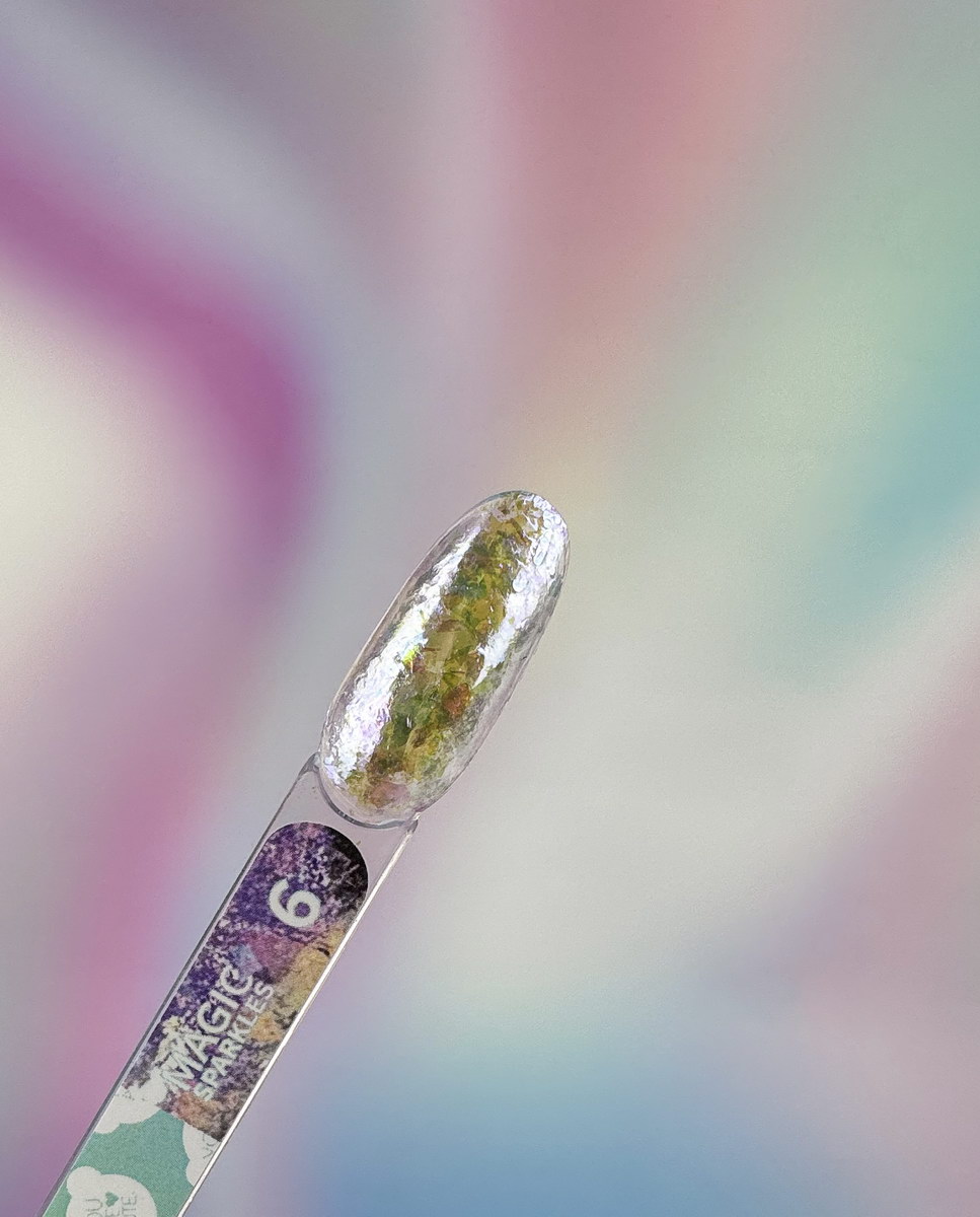 Сухі блискітки Magic Sparkles - це тонкі пластівці-блискітки хамелеони, які надають манікюру сяйва та створюють неймовірно стильний дизайн.