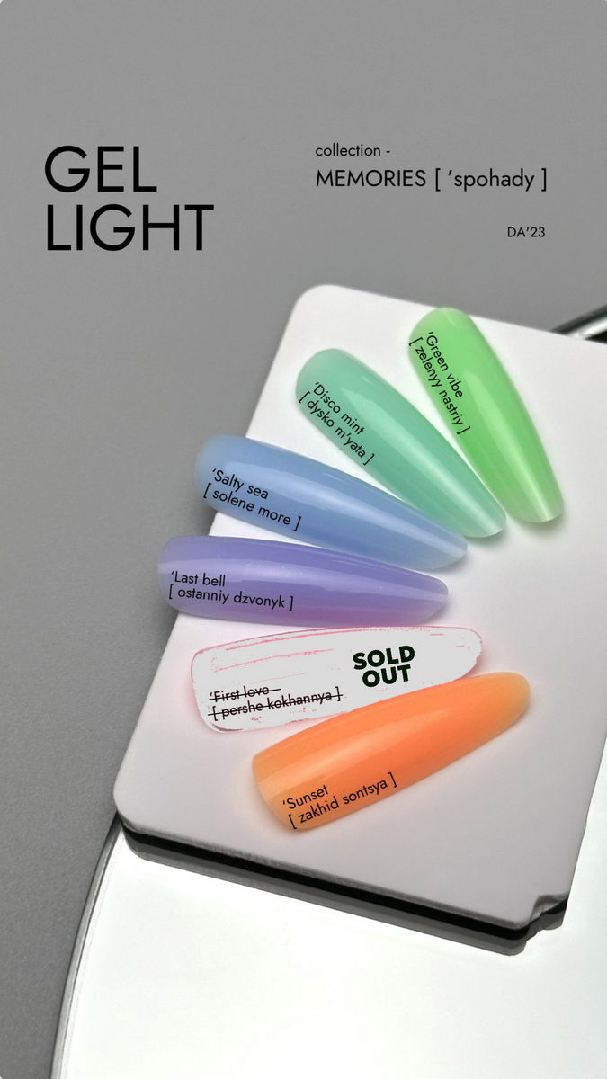 Лімітована SUMMER DROP COLLECTION GEL LIGHT від DA’23, вона саме про ці спогади… Про яскраво-насичені емоціямі дні літніх канікул. Про безтурботність, та разом з тим щодня прожитий спектр емоцій і гаму моментів, які ставали вашими цінними спогадами на все життя.
