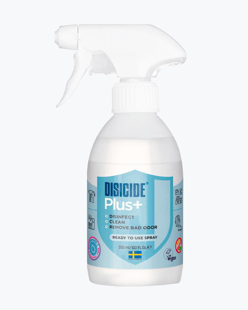 Екологічно чистий біоцидний продукт на водній основі, що не містить розчинників, веганський для використання всередині приміщень. Може використовуватися на всіх водостійких та пористих поверхнях, а також на текстилі та шкірі. Disicide ® Plus + працює проти різних видів бактерій, вірусів, грибів та усуває неприємні запахи. Не змішувати з іншими засобами, так як це може звести нанівець його ефективність. Доведено дієвість проти бактерій і вірусів згідно з нормами ЄС EN 13697, EN 1276, EN 1650, EN 13624, EN 13727, EN 14562, EN 14476, EN 14561.