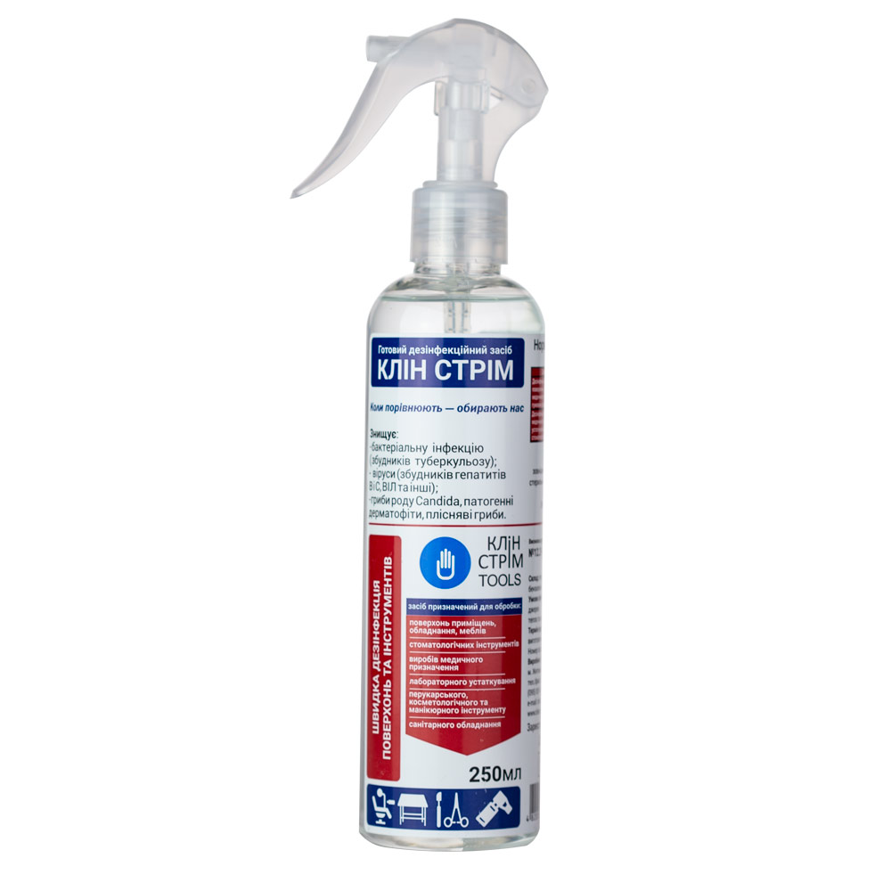 Купити Дезінфікуюча рідина CLEAN STREAM для поверхонь та інструментів, 250 мл, ви зможете у нашому інтернет-магазині limonad з доставкою по всій Україні в тому числі і Київ, Дніпро, Одеса, Харків, Запоріжжя, Одеса, Львів та багато інших населених пунктів.