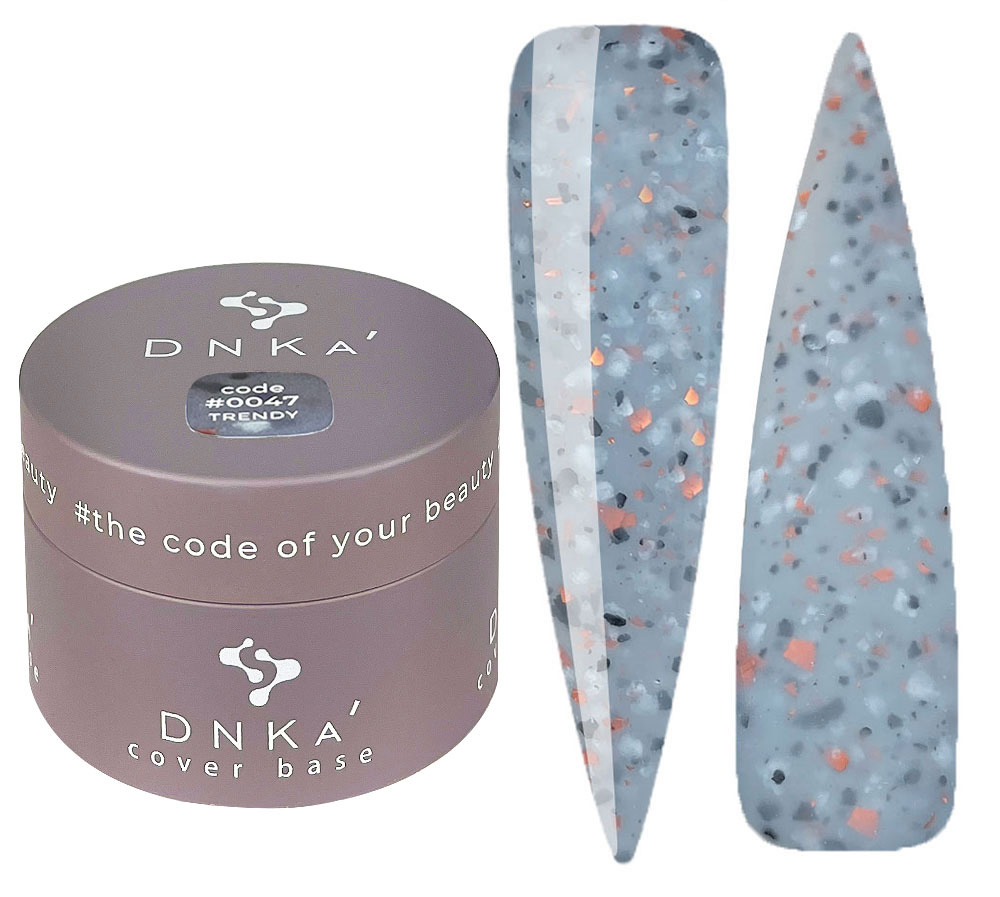 Купити База кольорова DNKa Cover №047 Trendy Мармуровий мокрий асфальт з чорними та білими частинками та частинками поталлі, 30 мл, ви зможете у нашому інтернет-магазині limonad з доставкою по всій Україні в тому числі і Київ, Дніпро, Одеса, Харків, Запоріжжя, Одеса, Львів та багато інших населених пунктів.