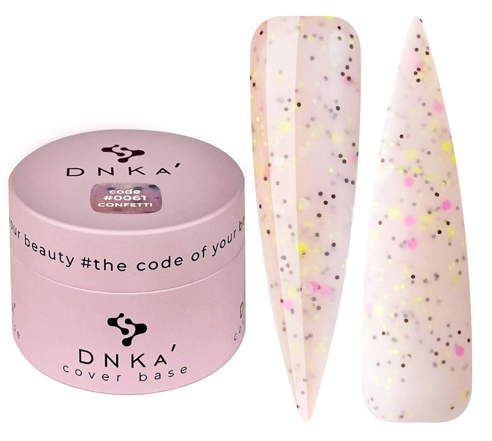Камуфлююча база DNKa’ Cover Base #0061 Confetti - База середньої твердості, високої адгезивності та пігментованості, добре самовирівнюється.