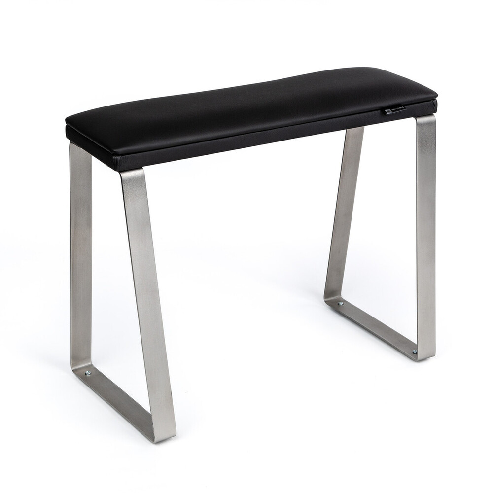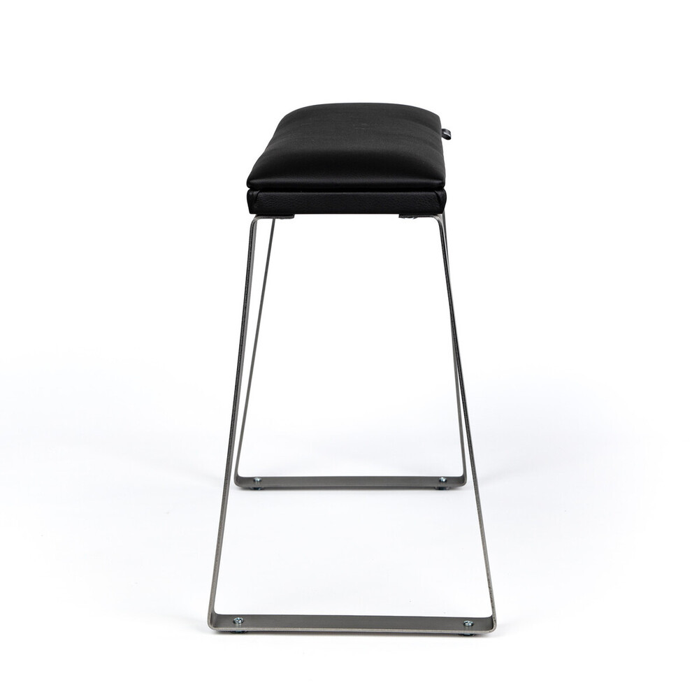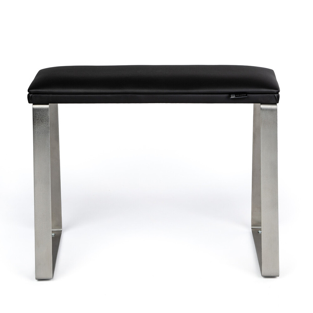 Верхня частина – це м’яка і пружна подушка, обтягнута довговічним матеріалом “під шкіру”, який надає виробу вишуканого вигляду і приємних тактильних відчуттів. Металеві ніжки з силіконовими накладками підкреслюють сучасний дизайн і забезпечують надійну стабільність на будь-якій поверхні.