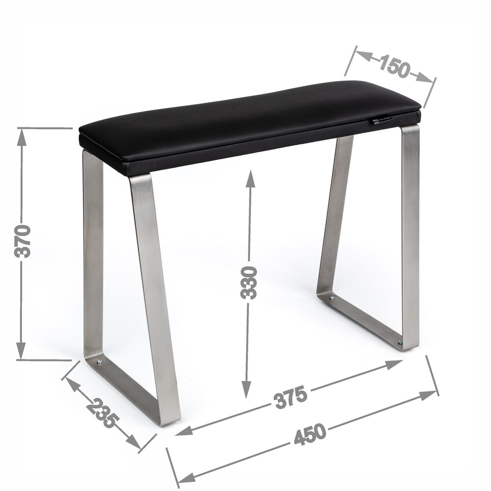 Вільний простір під підставкою – це додаткова зручність: він дозволяє розмістити поруч інструменти або аксесуари, зберігаючи порядок у робочій зоні. Висота підставки (370 мм) продумана так, щоб забезпечити оптимальне положення ніг, що зручно як для майстра, так і для клієнта.
