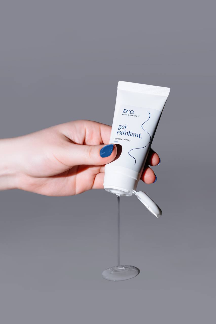 1 крок - пілінг gel exfoliant. Нанести тонким шаром, оминаючи зону навколо очей 1 см. Чекаємо 2 хвилини.