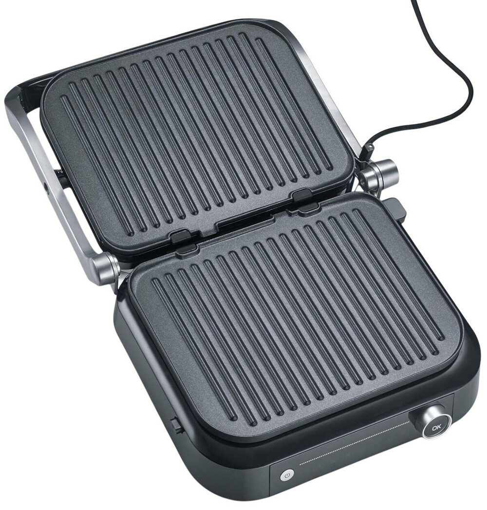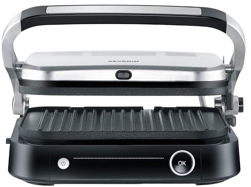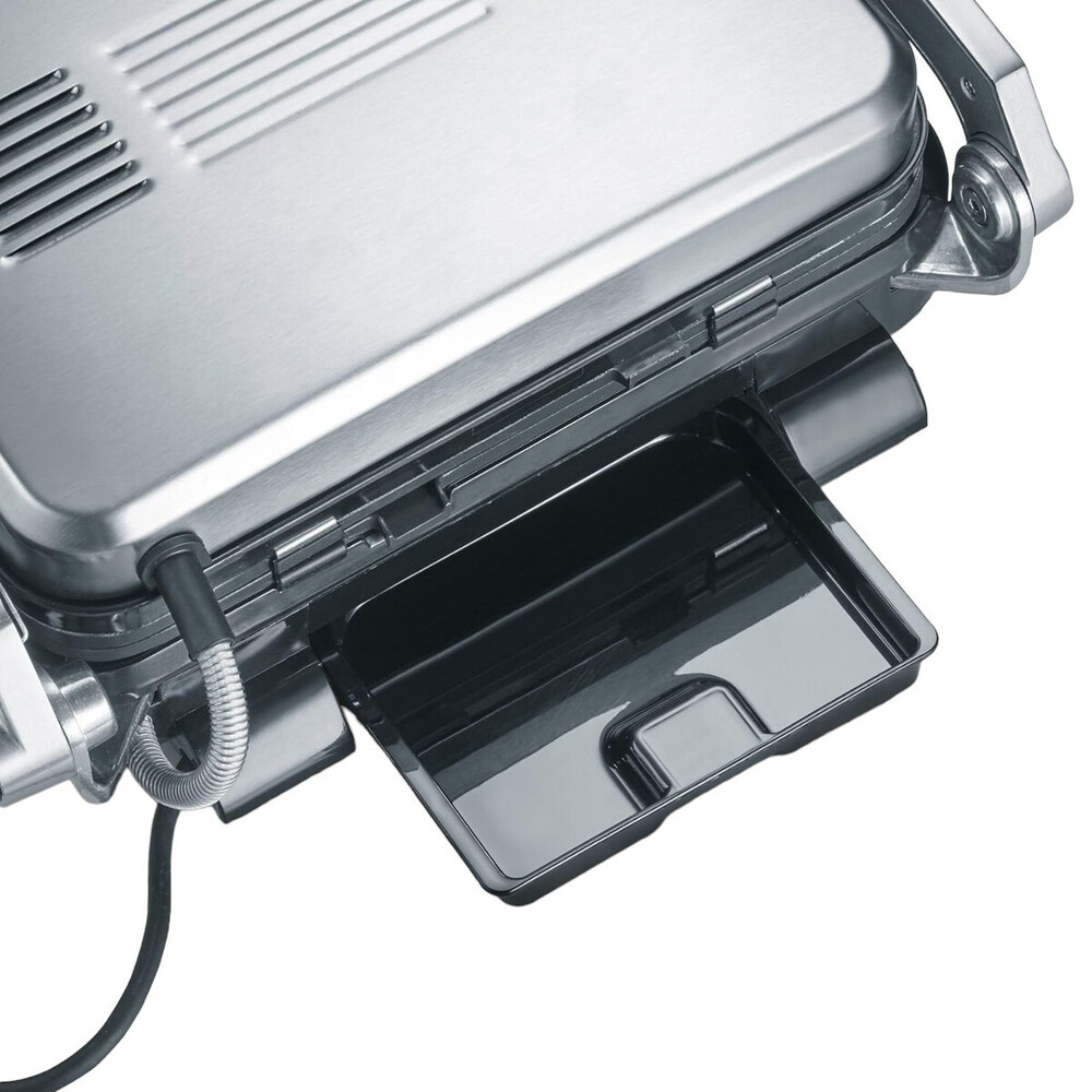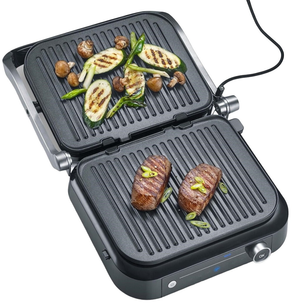 Гриль Severin KG 2395 задовольнить усіх гурманів. Він має до 7 різних автоматичних програм і одну ручну програму приготування. Практичний піддон для збору жиру на задній панелі приладу дозволяє легко підтримувати його в чистоті. Гриль оснащений датчиком, який визначає товщину страв і вказує, коли досягнуто різних рівнів приготування.