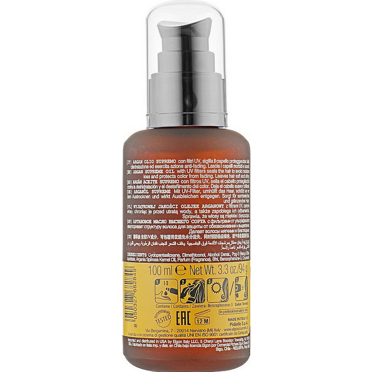 Арганієва олія, розроблена професіоналами бренда Elgon, — доглядовий продукт, який ідеально підійде для сухого, ламкого і пористого волосся з посіченими кінчиками. Його формула багата не тільки дорогоцінною олією арганії, а й містить комплекс Redoxina 2.0, збагачений гіалуроновою кислотою та рослинним кератином, завдяки чому забезпечує інтенсивну живильну, зволожувальну та захисну дії. До того ж, цей б'юті-засіб має неймовірно ніжний аромат солодкої ванілі з домішкою квіткових і деревних відтінків.