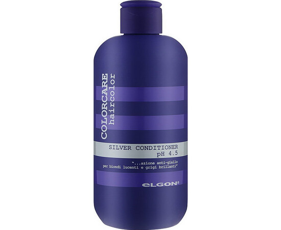 Серія косметичних засобів Colorcare від бренду Elgon – це якісний догляд за фарбованим волоссям, що дозволяє зберегти його ідеальний відтінок. Кондиціонер для фарбування — незамінний помічник для власниць освітлених, сивих та пофарбованих у відтінки блонд пасм. Активна формула позбавляє небажаної жовтизни, що виникає в результаті фотоокислення, зберігаючи холодний відтінок волосся.