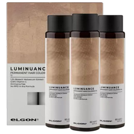Фарба для волосся Luminuance на масляній основі не містить PPD (парафенілендіамін) та аміак, що робить її більш безпечною та м’якою альтернативою традиційним фарбам. Її формула забезпечує стійкий колір, яскравий блиск і м’якість завдяки 1,2% екстракту коров’яку, який перетворює УФ-світло у видиме, створюючи природне сяйво на волоссі. Додавання 0,15% вітаміну С живить волосся, надаючи гладкість і антиоксидантний захист.