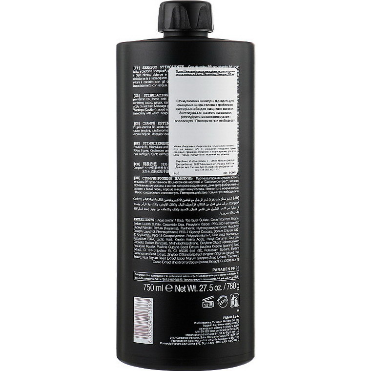 Інгредієнти: імбир, бетаїн, вітамін в5, гуарана, какао, кардамон, кератин, колаген, кофеїн, лимон, молочна кислота, ніацинамід, пантенол, перець, піроктон оламін, сіль